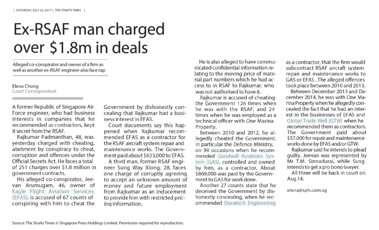 Ex-RSAF Man Charged Over $1.8m in Deals