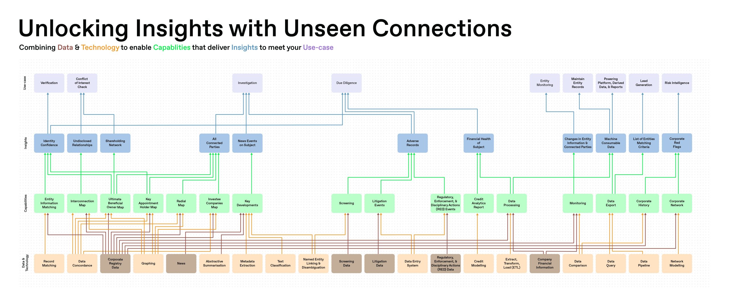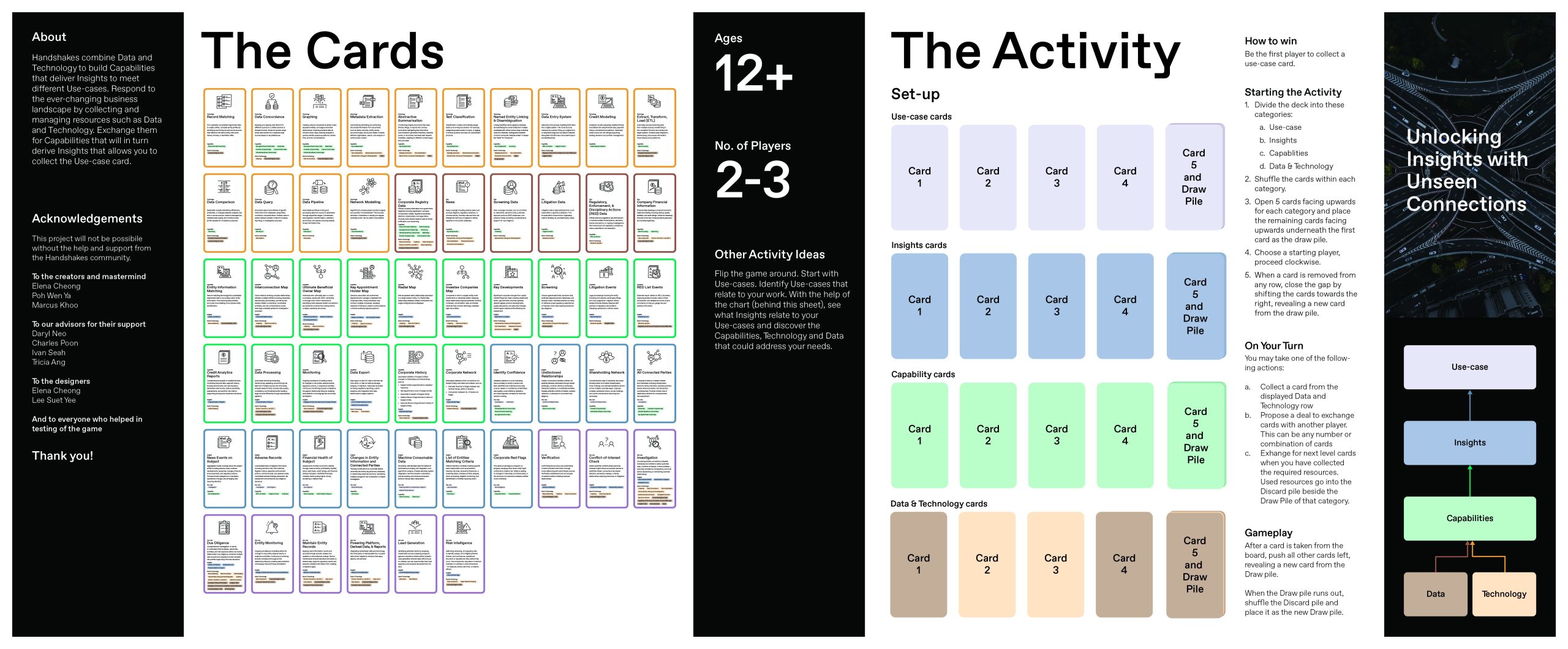 Handshakes combine Data and Technology to build Capabilities that deliver Insights to meet different Use-cases. Respond to the ever-changing business landscape by collecting and managing resources such as Data and Technology. Exchange them for Capabilities that will in turn derive Insights that allows you to collect the Use-case card.